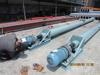 37米螺旋輸送機(jī)制作完成 | 管式螺旋輸送機(jī)試車 | |